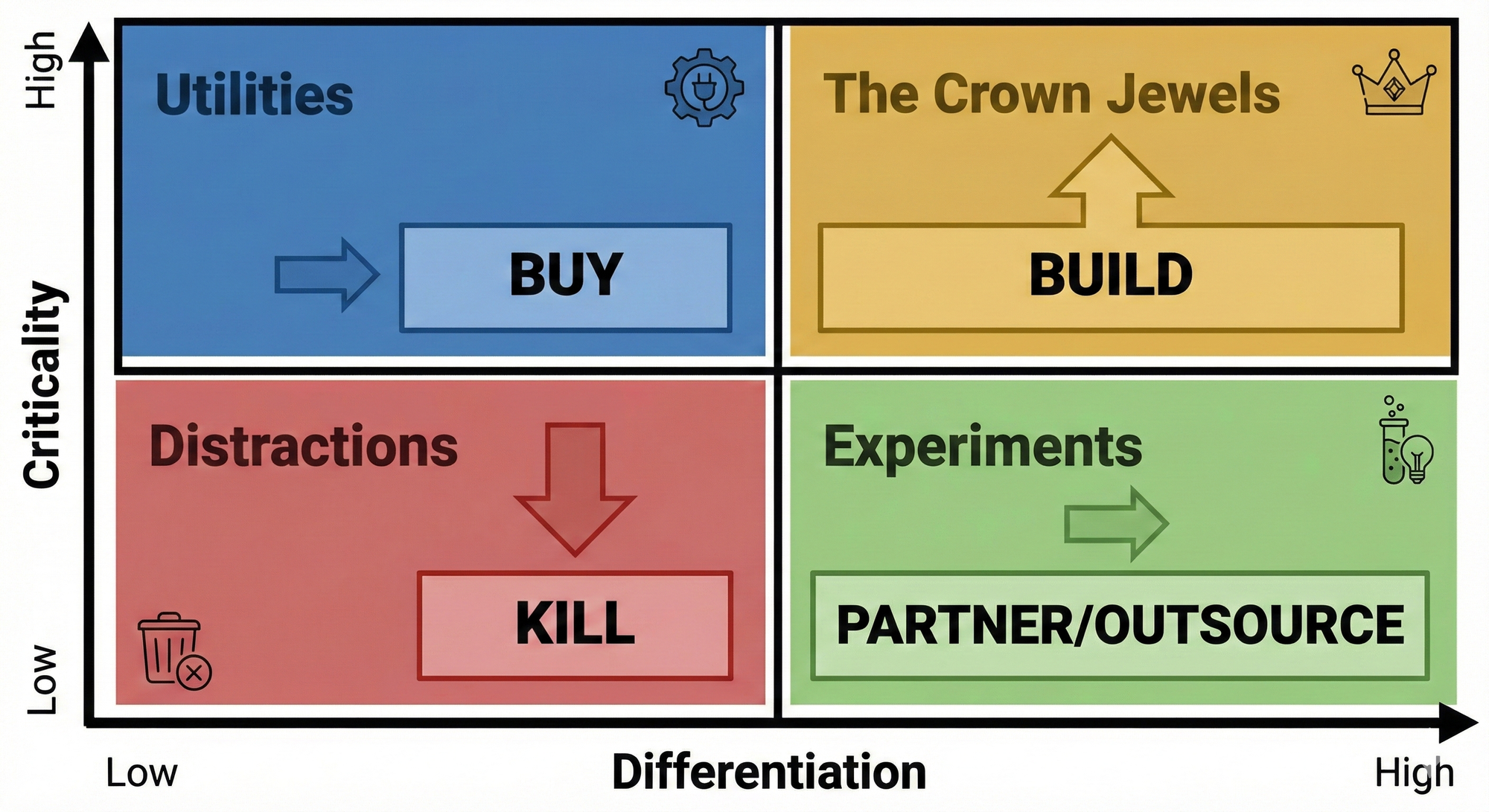 - Apply the Matrix: Is this project "Core" (Differentiating)?