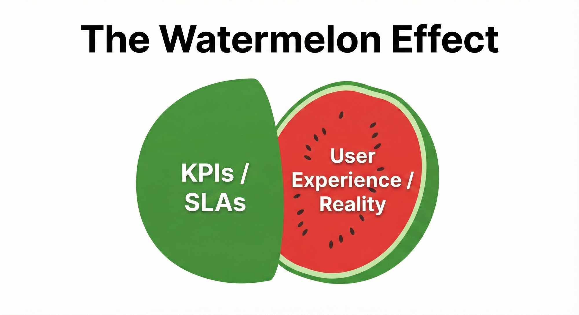 A "Watermelon Metric" satisfies the contract but fails the user. It is a metric designed to keep the vendor safe, not the customer happy.